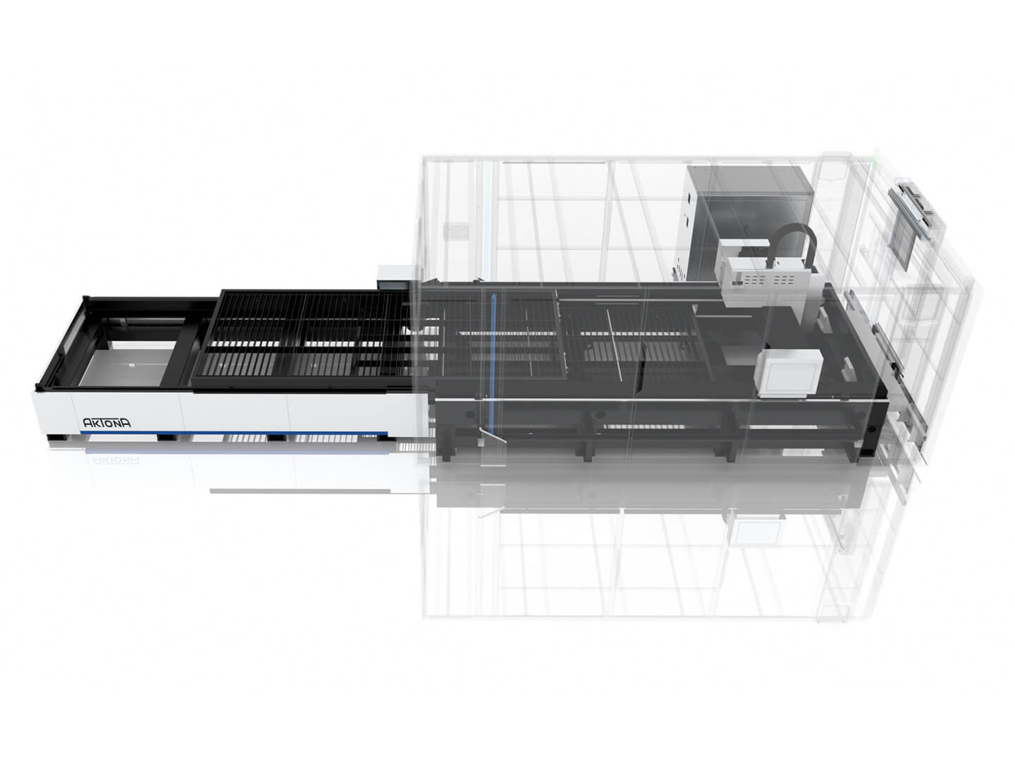 Wycinarki laserowe fiber z serii Aktona GA to urządzenia w pełnej obudowie, wyposażone w wymienne stoły robocze. Zaprojektowane z myślą o pracy z wysokimi mocami lasera, przeznaczone do cięcia grubych i ciężkich blach stalowych. Stół do cięcia w serii Aktona GA posiada wzmocnioną konstrukcję wykonaną z masywnej stalowej płyty o grubości 16 mm, gwarantującą stabilność pracy nawet przy wysokich prędkościach cięcia oraz wysoką wytrzymałość stołu podczas obróbki materiałów o dużej masie.